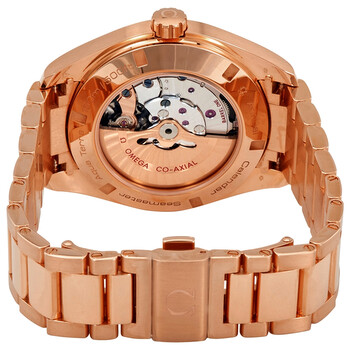 18kt rose gold case with a 18kt rose gold bracelet. Fixed 18kt rose gold bezel. Grey dial with luminous rose gold-tone hands and index hour markers. Minute markers around the outer rim. Dial Type: Analog. Luminescent hands and markers. Month and date display at the 3 o'clock position. Omega Calibre 8611 automatic movement with a 55-hour power reserve. Scratch resistant sapphire crystal. Screw down crown. Transparent case back. Case size: 43 mm. Case thickness: 15.5 mm. Round case shape. Band width: 21 mm. Fold over clasp. Water resistant at 150 meters / 500 feet. Functions: annual calendar, month, date, hour, minute, second, co-axial escapement, chronometer. Luxury watch style. Watch label: Swiss Made. Omega Seamaster Automatic Grey Dial Men's Watch 231.50.43.22.06.003.