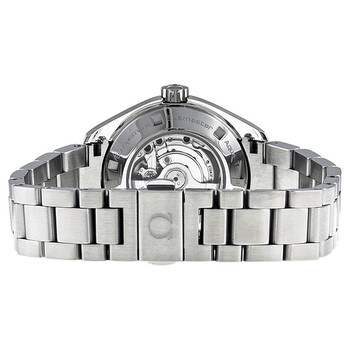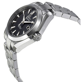 Stainless steel case with a stainless steel bracelet. Fixed stainless steel bezel. Black dial with luminous silver-tone hands and index hour markers. Minute markers around the outer rim. Dial Type: Analog. Luminescent hands and markers. Date display at the 3 o'clock position. Automatic movement with a 50-hour power reserve. Scratch resistant sapphire crystal. Screw down crown. Skeleton case back. Case diameter: 34 mm. Case dimensions: 10 mm. Round case shape. Bracelet width: 16 mm. Deployment clasp with a push button release. Water resistant at 150 meters/ 500 feet. Functions: date, hour, minute, second. Luxury watch style. Watch label: Swiss Made. Omega Seamaster Black Dial Ladies Watch 231.10.34.20.01.001.