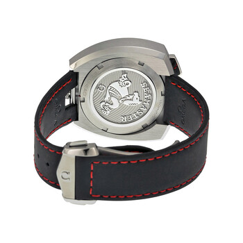 Stainless steel case with a black leather strap. Fixed stainless steel bezel. Black dial with luminous hands and index / Arabic numeral hour markers. Minute markers around the outer rim. Black bi-directional. Dial Type: Analog. Luminescent hands and markers. Date display at the 3 o'clock position. Chronograph - two sub-dials displaying: 60 second and 30 minute. Omega calibre 3113 automatic movement with a 52-hour power reserve. Scratch resistant sapphire crystal. Screw down crown. Solid case back. Unique case shape, case size: 43 mm, case thickness: 14.85 mm. Band width: 22 mm. Fold over clasp with a push button release. Water resistant at 150 meters / 500 feet. Functions: chronograph, hour, minute, second, co-axial escapement, chronometer. Dress watch style. Watch label: Swiss Made. Item Variations: 225 12 43 50 01 001, 225-12-43-50-01-001, 225/12/43/50/01/001, 22512435001001. Omega Seamaster Bullhead Chronograph Automatic Men's Watch 22512435001001.