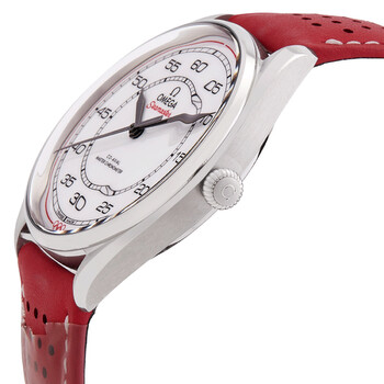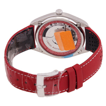 Silver-tone stainless steel case with a red leather strap. Fixed silver-tone stainless steel bezel. White dial with black hands and Arabic numeral hour markers. Dial Type: Analog. Omega Calibre 8806 Automatic movement, containing 35 Jewels, bitting at 25200 vph, and has a power reserve of approximately 55 hours. Scratch resistant sapphire crystal. Transparent case back. Round case shape, case size: 39.5 mm. Band width: 20 mm. Buckle clasp. Water resistant at 60 meters / 200 feet. Functions: hour, minute, second, co-axial escapement, chronometer, magnetic resistant. Seamaster Olympic Timekeeper Series. Luxury watch style. Watch label: Swiss Made. Omega Seamaster Olympic Timekeeper Automatic Chronometer White Dial Men's Limited Edition Watch 522.32.40.20.04.004.