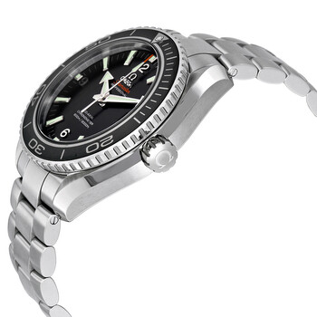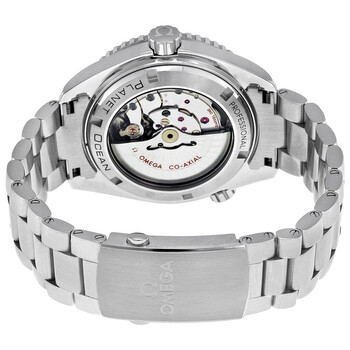 Silver-tone stainless steel case with a silver-tone stainless steel bracelet. Uni-directional rotating stainless steel with a black ceramic top ring bezel. Black dial with lumnous silver-tone hands and index hour markers. Arabic numeral marks the 6,9, and 12 o'clock positions. Dial Type: Analog. Luminescent hands and markers. Date display at the 3 o'clock position. Omega Calibre 8500 automatic movement with a 60-hour power reserve. Scratch resistant sapphire crystal. Screw down crown. Skeleton case back. Round case shape. Case size: 45.5 mm. Band width: 22 mm, band length: 8 inches. Deployment with push button release clasp. Water resistant at 600 meters / 2000 feet. Functions: date, hour, minute, second, chronometer. Dive watch style. Watch label: Swiss Made. Item Variations: 232 30 46 21 01 001, 232-30-46-21-01-001, 232/30/46/21/01/001, 23230462101001. Omega Seamaster Planet Ocean 600 M Co-Axial Automatic Men's Watch 232.30.46.21.01.001.