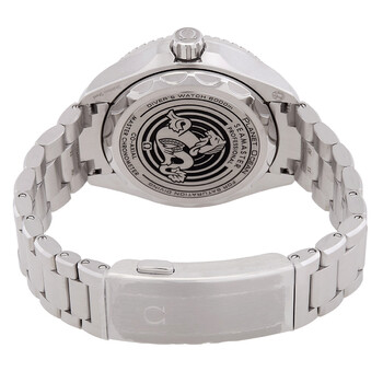 Silver-tone stainless steel case and bracelet. Uni-directional rotating blue ceramic bezel. White dial with 18kt white gold hands and index-Arabic numeral hour markers. Arabic numeral markers at the 3, 6, 9 and 12 o'clock positions. Minute markers around the outer rim. Dial Type: Analog. Luminescent hands and markers. Omega Calibre 8912 Automatic movement, containing 39 Jewels, bitting at 25200 vph, and has a power reserve of approximately 60 hours. Scratch resistant sapphire crystal. Screw down crown. Transparent case back. Round case shape, case size: 45.5 mm. Band width: 22 mm. Water resistant at 600 meters / 2000 feet. Functions: hour, minute, second, co-axial escapement, chronometer. Seamaster Planet Ocean Series. Dive watch style. Watch label: Swiss Made. Omega Seamaster Planet Ocean Automatic Chronometer White Dial Men's Watch 215.30.46.21.04.001.