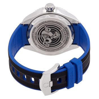 Silver-tone stainless steel case with a black rubber strap. Uni-directional rotating blue ceramic bezel. White dial with 18kt white gold hands and index-Arabic numeral hour markers. Arabic numeral markers at the 3, 6, 9 adn 12 o'clock positions. Minute markers around the outer rim. Dial Type: Analog. Luminescent hands and markers. Omega Calibre 8912 Automatic movement, containing 39 Jewels, bitting at 25200 vph, and has a power reserve of approximately 60 hours. Scratch resistant sapphire crystal. Screw down crown. Transparent case back. Round case shape, case size: 45.5 mm. Band width: 22 mm. Water resistant at 600 meters / 2000 feet. Functions: hour, minute, second, co-axial escapement, chronometer. Seamaster Planet Ocean Series. Dive watch style. Watch label: Swiss Made. Omega Seamaster Planet Ocean Automatic Chronometer White Dial Men's Watch 215.32.46.21.04.001.