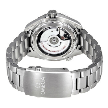 Silver-tone stainless steel case with a silver-tone stainless steel bracelet. Uni-directional rotating silver-tone stainless steel with a white ceramic top ring bezel. White dial with luminous silver-tone arrow-shaped hands and index hour markers. Arabic numerals mark the 6, 9 and 12 o'clock positions. minute markers around the outer rim. Dial Type: Analog. Luminescent hands and markers. Date display at the 3 o'clock position. Omega Calibre 8800 Automatic movement, containing 35 Jewels, bitting at 25200 vph, and has a power reserve of approximately 55 hours. Scratch resistant sapphire crystal. Screw down crown. Transparent case back. Round case shape, case size: 39.5 mm, case thickness: 14.16mm. Fold over with push button release clasp. Water resistant at 600 meters / 2000 feet. Functions: date, hour, minute, second, co-axial escapement, chronometer. Seamaster Planet Ocean Series. Luxury watch style. Watch label: Swiss Made. Omega Seamaster Planet Ocean Automatic Men's Watch 215.30.40.20.04.001.