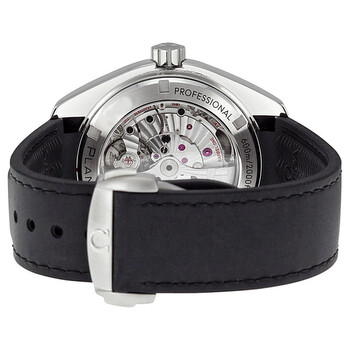 Stainless steel case with a black rubber strap. Uni-directional rotating stainless steel bezel with grey ceramic fill. Black dial with luminous silver-tone hands and index hour markers. Arabic numerals mark the 6, 9 and 12 o'clock positions. Minute markers around the outer rim. Dial Type: Analog. Luminescent hands and markers. Date display at the 3 o'clock position. Automatic movement with 60-hour power reserve. Scratch resistant sapphire crystal. Screw down crown. Skeleton case back. Case diameter: 45.5 mm. Case thickness: 16.9 mm. Round case shape. Water resistant at 600 meters / 2000 feet. Functions: date, hour, minute, second. Casual watch style. Watch label: Swiss Made. Omega Seamaster Plant Ocean Black Dial Rubber Men's Watch 232.32.46.21.01.003.