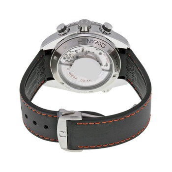 Stainles steel case with a black rubber strap. Uni-directional rotating stainless steel bezel with a black ceramic top ring. Black dial with luminous silver-tone hands and index hour markers. An Arabic numeral marks the 12 o'clock position. Minute markers around the outer rim. Dial Type: Analog. Luminescent hands and markers. Date display at the 6 o'clock position. Chronograph - two sub-dials displaying: 60 second and 12 hour. Omega calibre 9300 automatic movement with a 60-hour power reserve. Scratch resistant sapphire crystal. Skeleton case back. Case size: 45.5 mm. Case thickness: 14 mm. Round case shape. Band width: 20 mm. Fold over clasp with a push button release. Water resistant at 600 meters / 2000 feet. Functions: chronograph, date, hour, minute, second, chronometer. Luxury watch style. Watch label: Swiss Made. Item Variations: 232 32 46 51 01 005, 232-32-46-51-01-005, 232/32/46/51/01/005, 23232465101005. Omega Seamaster Planet Ocean Automatic Men's Watch 232.32.46.51.01.005.