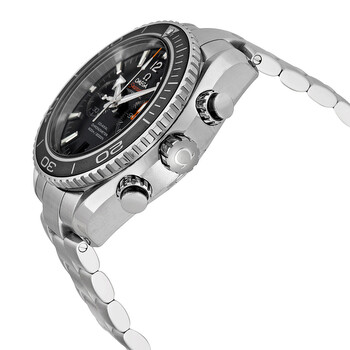 Stainless steel case with a stainless steel bracelet. Uni-directional rotating stainless steel bezel with a black ceramic top ring. Black dial with luminous silver-tone hands and index hour markers. An Arabic numeral appears at the 12 o'clock position. minute markers around the outer rim. Dial Type: Analog. Luminescent hands and markers. Date display at the 6 o'clock position. Two sub-dials displaying: 60 second and 12 hours. Omega calibre 9300 automatic movement with a 60-hour power reserve. Scratch resistant sapphire crystal. Screw down crown. Skeleton case back. Case size: 45.5 mm. Case thickness: 19.5 mm. Round case shape. Band width: 20 mm. Deployment clasp with a push button release. Water resistant at 600 meters / 2000 feet. Functions: chronograph, date, hour, minute, second, chronometer. Dive watch style. Watch label: Swiss Made. Item Variations: 232 30 46 51 01 001, 232-30-46-51-01-001, 232/30/46/51/01/001, 23230465101001. Omega Seamaster Planet Ocean Black Dial Men's Watch 232.30.46.51.01.001.