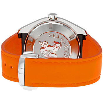 Stainless steel case with a orange rubber bracelet. Unidirectional rotating orange ion-plated bezel. Black dial with luminous arrow hands and index hour markers. Arabic numerals mark the 6, 9 and 12 o'clock positions. Minute markers around the outer rim. Luminescent hands and markers. Date display at the 3 o'clock position. Self winding automatic chronometer co-axial movement. Scratch resistant sapphire crystal. Solid case back. Case diameter: 45 mm. Deployment clasp. Water resistant at 600 meters (2000 feet). Omega Seamaster Planet Ocean Men's Watch 2908.50.83.