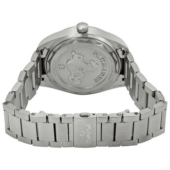 Stainless steel case with a stainless steel bracelet. Fixed stainless steel bezel. Brushed black dial with luminous silver-tone hands and index hour markers. Arabic numerals mark the 3, 6, 9 and 12 o'clock positions. Minute markers around the outer rim. Dial Type: Analog. Luminescent hands and markers. Omega calibre 8806 automatic movement with a 55-hour power reserve. Scratch resistant sapphire crystal. Screw down crown. Solid case back. Round case shape. Case size: 40 mm. Case thickness: 12.5 mm. Band width: 20 mm. Fold over clasp with a push button release. Water resistant at 150 meters / 500 feet. Functions: hour, minute, second. Dive watch style. Watch label: Swiss Made. Omega Seamaster Railmaster Automatic Men's Watch 220.10.40.20.01.001.