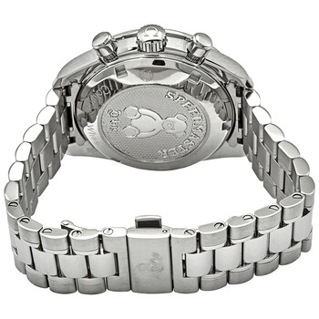 Stainless steel case with a stainless steel bracelet. Fixed stainless steel bezel with a blue aluminium top ring showing tachymeter markings. Brushed blue dial with luminous rhodium-plated hands and index hour markers. Minute markers around the outer rim. Dial Type: Analog. Luminescent hands and markers. Date display at the 6 o'clock position. Chronograph - three sub-dials displaying: 60 second, 30 minute and 12 hour. Omega calibre 3330 automatic movement, based upon ETA Valjoux 7753, containing 31 Jewels, bitting at 28800 vph, and has a power reserve of approximately 52 hours. Scratch resistant sapphire crystal. Screw down crown. Solid case back. Round case shape. Case size: 38 mm. Band width: 18 mm. Fold over clasp with a push button release. Water resistant at 100 meters / 330 feet. Functions: chronograph, date, hour, minute, second, tachymeter. Speedmaster 38 Orbis Series. Luxury watch style. Watch label: Swiss Made. Omega Speedmaster 38 Orbis Chronograph Automatic Men's Watch 324.30.38.50.03.002.