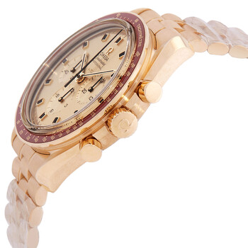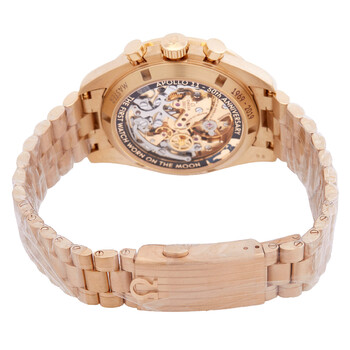 18kt yellow gold case and bracelet. Fixed bezel. Yellow dial with index hour markers. Dial Type: Analog. Omega Calibre 3861 automatic movement with a 50-hour power reserve. Scratch resistant sapphire crystal. Transparent see through case back. Round case shape, case size: 42 mm. Band width: 20 mm. Deployment clasp. Water resistant at 50 meters / 165 feet. Functions: chronograph, hour, minute, second. Additional Info: limited edition (1,014). Speedmaster Anniversary Series Series. Luxury watch style. Watch label: Swiss Made. Omega Speedmaster Apollo 11 50th Anniversary Series Chronograph Automatic Men's Watch 310.60.42.50.99.001.