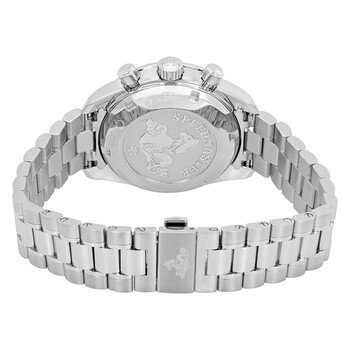 Stainless steel case with a stainless steel bracelet. Fixed stainless steel bezel with a black aluminium top ring showing tachymeter markings. Black dial with rhodium-plated hands and index hour markers. Minute markers around the outer rim. Dial Type: Analog. Luminescent hands and markers. Chronograph - three sub-dials displaying: 60 second, 30 minute and 12 hour. Omega calibre 3330 automatic movement, based upon ETA Valjoux 7753, containing 31 Jewels, bitting at 28800 vph, and has a power reserve of approximately 52 hours. Scratch resistant sapphire crystal. Pull / push crown. Solid case back. Round case shape, case size: 38 mm, case thickness: 13.2 mm. Band width: 18 mm. Fold over clasp with a push button release. Water resistant at 100 meters / 330 feet. Functions: chronograph, tachymeter, hour, minute, second. Speedmaster Series. Luxury watch style. Watch label: Swiss Made. Omega Speedmaster Chronograph Automatic Black Dial Men's Watch 324.30.38.50.01.001.