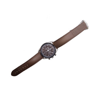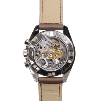 Silver-tone stainless steel case with a brown leather strap. Fixed tachymeter scale black stainless steel bezel. Brown dial with silver-tone hands and index hour markers. Minute markers around the outer rim. Dial Type: Analog. Luminescent hands and markers. Chronograph - three sub-dials displaying: 60 second, 30 minute and 12 hour. Automatic movement. Scratch resistant sapphire crystal. Transparent see through case back. Round case shape, case size: 42 mm. Deployment with push button release clasp. Functions: chronograph, hour, minute, second. Additional Info: original box, manual (complete accessories). Speedmaster Series. Luxury watch style. Watch label: Swiss Made. Omega Speedmaster Chronograph Automatic Brown Dial Men's Watch 311.32.42.30.13.001.