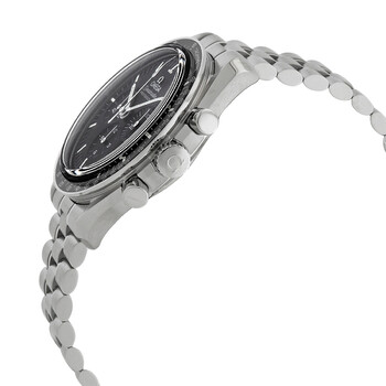 Stainless steel case with a stainless steel bracelet. Fixed stainless steel bezel with an inlaid black aluminium ring showing tachymeter markings. Black dial with luminous silver-tone hands and index hour markers. Minute markers around the outer rim. Dial Type: Analog. Luminescent hands and markers. Omega calibre 3861 hand wind movement. Scratch resistant sapphire crystal. Screw down crown. Transparent case back. Round case shape. Case size: 42 mm. Case thickness: 13.18 mm. Band width: 20 mm. Foild over with push button release clasp. Water resistant at 50 meters / 165 feet. Functions: chronograph, tachymeter, hour, minute, second. Additional Info: original box, manual (complete accessories). Speedmaster Series. Luxury watch style. Watch label: Swiss Made. Omega Speedmaster Chronograph Hand Wind Black Dial Men's Watch 310.30.42.50.01.002.
