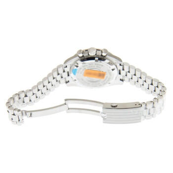 Silver-tone stainless steel case and bracelet. Fixed silver-tone stainless steel with an inlaid black aluminium ring bezel. Black dial with silver-tone hands and index hour markers. Minute markers around the outer rim. Dial Type: Analog. Luminescent hands and markers. Chronograph - three sub-dials displaying: 60 second, 30 minute and 12 hour. Omega Calibre 3861 Automatic movement, based upon Lemania 1873, containing 26 Jewels, bitting at 21600 vph, and has a power reserve of approximately 50 hours. Scratch resistant hesalite crystal crystal. Pull / push crown. Solid case back. Round case shape, case size: 42 mm, case thickness: 13.58 mm. Deployment clasp. Water resistant at 50 meters / 165 feet. Functions: chronograph, hour, minute, second. Additional Info: original box, manual (complete accessories). Speedmaster Series. Dive watch style. Watch label: Swiss Made. Omega Speedmaster Chronograph Hand Wind Black Dial Men's Watch 310.30.42.50.01.001.