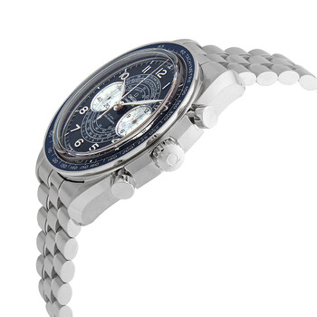 Stainless steel case with a stainless steel bracelet. Fixed stainless steel bezel with an inlaid blue aluminium ring showing tachymeter markings. Blue dial with silver-tone hands and Arabic numeral hour markers. Telemeter markings. Pulsometer scale. Minute markers around the outer rim. Dial Type: Analog. Chronograph - two silver sub-dials displaying: 60 second and 12 hour. Omega calibre 9908 hand wind movement. Scratch resistant sapphire crystal. Pull / Push crown. Transparent case back. Round case shape. Case size: 43 mm. Band width: 21 mm. Fold over clasp. Water resistant at 50 meters / 165 feet. Functions: chronograph, tachymeter, telemeter, hour, minute, second. Additional Info: original box, manual (complete accessories). Speedmaster Series. Luxury watch style. Watch label: Swiss Made. Omega Speedmaster Chronograph Hand Wind Blue Dial Men's Watch 329.30.43.51.03.001.