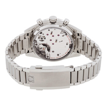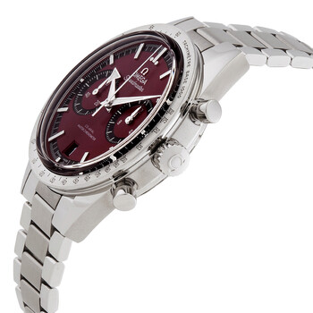 Silver-tone stainless steel case and bracelet. Silver-tone stainless steel bezel. Burgundy dial with rhodium-plated hands and index hour markers. Minute markers around the outer rim. Dial Type: Analog. Luminescent hands and markers. Date display at the 6 o'clock position. Chronograph - two sub-dials displaying: 60 second and 12 hour/60 min. Omega Calibre 9906 Hand Wind movement, containing 44 Jewels, bitting at 28800 vph, and has a power reserve of approximately 60 hours. Scratch resistant sapphire crystal. Pull / push crown. Transparent case back. Round case shape, case size: 40.5 mm. Band width: 20 mm. Water resistant at 50 meters / 165 feet. Functions: chronograph, column wheel, date, hour, minute, small second, co-axial escapement, magnetic resistant. Speedmaster Series. Luxury watch style. Watch label: Swiss Made. Omega Speedmaster Chronograph Hand Wind Burgundy Dial Men's Watch 332.10.41.51.11.001.
