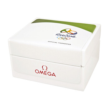 Stainless steel case with a stainless steel bracelet. Fixed stainless steel bezel. Tachymeter markings around the inner bezel. Black dial with luminous hands and index hour markers. Minute markers. Dial Type: Analog. Luminescent hands and markers. Date display at the 6 o'clock position. Chronograph - three sub-dials displaying: 60 second, 30 minute and 12 hour. Omega calibre 3330 automatic movement with a 52-hour power reserve. Scratch resistant sapphire crystal. Screw down crown. Solid case back. Case size: 42 mm x 46 mm. Case thickness: 15 mm. Round case shape. Band width: 20 mm. Deployment clasp. Water resistant at 100 meters / 330 feet. Functions: chronograph, date, hour, minute, second, chronometer, tachymeter. Additional Info: limited edition. suitable for snorkeling as well as swimming but not diving. Luxury watch style. Watch label: Swiss Made. Omega Speedmaster Mark II Rio 2016 Olympics Edition Chronograph Men's Watch 52210435001001.