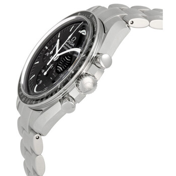 Stainless steel case with a stainless steel bracelet. Fixed black ion-plated bezel with tachymeter. Black dial with luminous hands and index hour markers. Minute markers around the outer rim. Dial Type: Analog. Luminescent hands and dial markers. Chronograph - three sub-dials displaying: 60 seconds, 30 minutes and 12 hours sub-dials. Manual movement. Scratch resistant hesalite crystal. Solid case back. Case diameter: 42 mm. Case thickness: 14.3 mm. Round case shape. Stainless steel clasp. Water resistant at 50 meters / 165 feet. Functions: hours, minutes, seconds, chronograph, tachymeter. Sport watch style. Watch label: Swiss Made. Omega Speedmaster Professional Chronograph Moon Watch 3570.50.