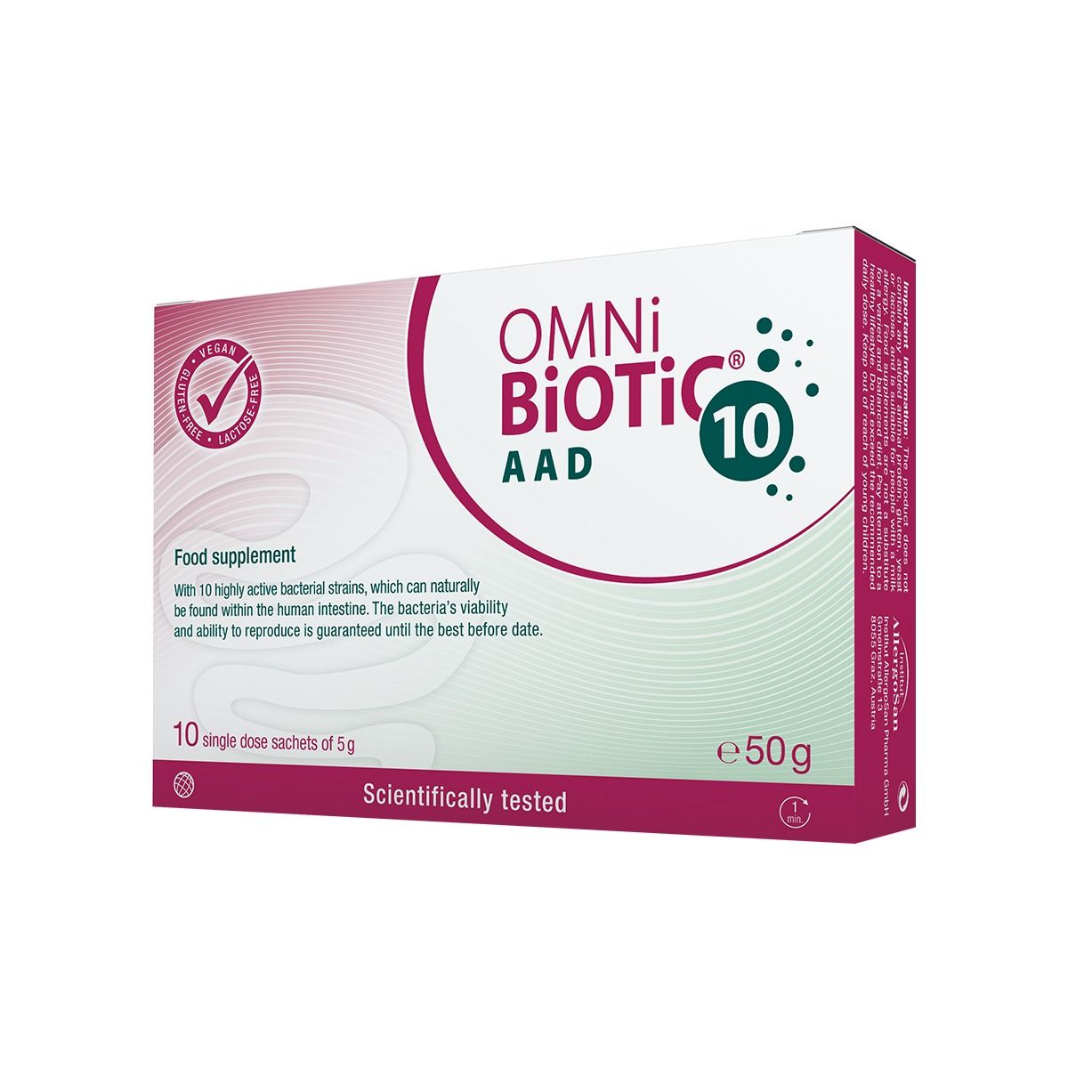 ომნი-ბიოტიკი/10 AAD - მეცნიერულად ტესტირებული სინბიოტიკი, რომელიც შეიცავს სპეციალურად შერჩეულ 10 მაღალაქტიურ ბაქტერიულ შტამს (ბუნებრივად გვხვდება ადამიანის ნაწლავებში), რომლებიც კოლონიზაციას ახდენენ ნაწლავებში, ანტიობიოტიკოთერაპიისას და მის შემდეგ პერიოდში ხელს უშლიან ისეთი მავნე მიკრობების გამრავლებას, როგორიცაა Clostridium difficile , ამცირებენ Clostridium difficile-ის მიერ ტოქსინების გამოყოფას, აღადგენენ ბაქტერიულ ბალანსს და ნაწლავის ჯანსაღ მიკროფლორას, ამცირებენ და აღმოფხვრიან ანტიბიოტიკოთერაპიისას და მის შემდგომ პერიოდში განვითარებულ დიარეას და დისბიოზის შედეგად გამოწვეულ სხვა პრობლემებს.