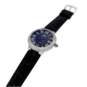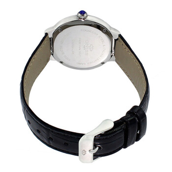 Ladies Watch, Swiss Quartz Movement , Stainless Steel Case (Silver?tone), w/ 105 pcs. Austrian Settings Stones on the bezel, Blue?-Date dial, Black?Genuine Italian Leather band. 5 Atm , Mineral Crsytal Silver-tone stainless steel case with a black leather strap. Fixed silver-tone crystal bezel. Black dial with blue hands and Roman numeral hour markers. Minute markers around the outer rim. Dial Type: Analog. Luminescent hands. Date display at the 3 o'clock position. Quartz movement. Scratch resistant mineral crystal. Pull / push crown. Solid case back. Round case shape, case size: 36 mm, case thickness: 8.5 mm. Band width: 18 mm, band length: 7 inches. Buckle clasp. Water resistant at 3 meters / 10 feet. Functions: date, hour, minute, second. On3322-l Series. Dress watch style. Watch label: Swiss Made. Oniss ON3322-L Quartz Crystal Black Dial Ladies Watch ON3322-L/BK.