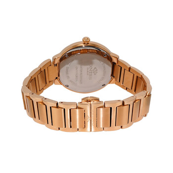 Rose gold-tone stainless steel case with a rose gold-tone stainless steel bracelet. Fixed rose gold-tone stainless steel bezel. Blue dial with rose gold-tone hands and Roman numeral hour markers. Minute scale around the inner rim. Dial Type: Analog. Date display at the 3 o'clock position. Quartz movement. Scratch resistant mineral crystal. Pull / push crown. Solid case back. Round case shape, case size: 37 mm, case thickness: 10 mm. Band width: 17 mm, band length: 6 inches. Deployment with push button release clasp. Water resistant at 50 meters / 165 feet. Functions: date, hour, minute, second. Casual watch style. Watch label: Swiss Movt. Oniss ONJ1111 BlueDial Ladies Watch ONJ1111-0LRG-BU.
