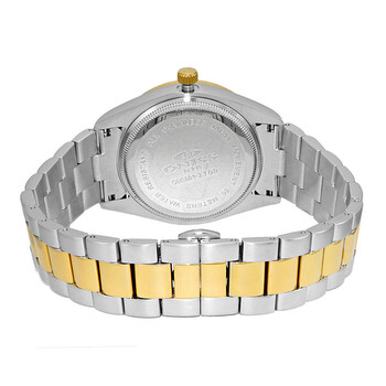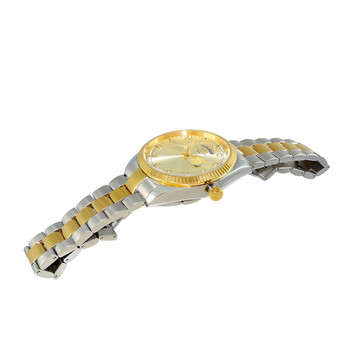Men's Watch, 2-tone Gold All Stainless Steel Case an Band, w/ Fold-over deployment w/ safety clasp , Sunray Goldtone Dial, with Day-Date Display, Accented with Austrian Crystal, Gold tone with luminous hour indicator hour and second hand. Screw-down Crown, Mineral Crystal