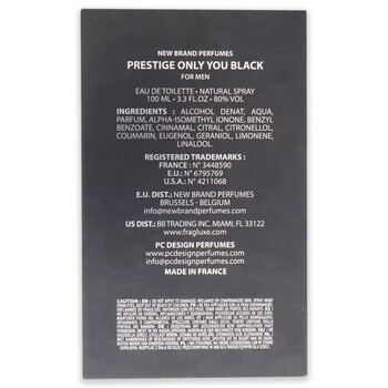 Delve into the captivating allure of Only You Black, a magnificent men's fragrance brought to you by the renowned design house of New Brand. This woody spicy scent is a perfect blend of invigorating bergamot, warm spices, soothing vanilla, and rich sandalwood. It's a symphony of notes that create an unforgettable aroma, making it a perfect choice for the modern man.