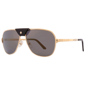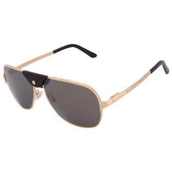Cartier Sunglasses. Series Santos De Cartier. Series number: CT0165S. Color code: 007. Shape: Navigator. Lens Width: 60 mm. Lens Bridge: 16 mm. Arm Length: 135 mm. 100% UV protection. Polarized. Frame Material: Metal. Frame Color: Gold with Black Leather. Lenses Type: Polarized Grey Flash Mirror. Rim Style: Full-Rim. UPC/EAN code: 843023135539. Cartier Santos De Cartier Polarized Grey Flash Mirror Navigator Men's Sunglasses CT0165S 007 60.