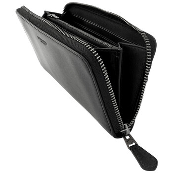 Coach Men's Wallets. SKU: 5014 BLK. Barcode: 193971964539. Color: Black. Size: 7 1/2" (L) x 4" (H) x 3/4" (W). Coach Black Sport Calf Leather Accordion Wallet - Black. The Coach sport calf leather wallet features a zip-around closure, outside open pocket, full-length bill compartments, zip coin pocket and 12 credit card slots. 100% Calf Leather.