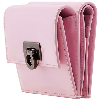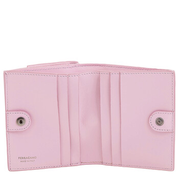 Ferragamo Ladies Wallets. SKU: 220434 763021. Color: Pink. Size: W: 11. 5cm, H: 8. 5cm. Ferragamo Gancini Clasp Compact Wallet. The Gancini wallet features a snap clousre, card slots, bill pockets. 100% Leather. Made in Italy.