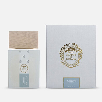 Launch year: 2023. Fragrance Family: Aromatic. Top notes: Sea water, Lime. Heart notes: Violet, Raspberry, Exotic floral notes. Base notes: Vanilla sugar, Ambroxan. Design house: Giardini Di Toscana. Design house category: niche fragrance brand. Design house country: Italy. Scent name: Celeste. Gender: Unisex. Category: Fragrance. SubType: EDP Spray. Size: 3.4 oz. Barcode: 8057509460097. Giardini Di Toscana Unisex Celeste EDP Spray 3.4 oz Fragrances 8057509460097.