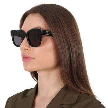 Gucci Sunglasses. Series number: GG0998S. Color code: 001. Shape: Square. Lens Width: 52 mm. Lens Bridge: 21 mm. Arm Length: 145 mm. 100% UV protection. Frame Material: Acetate. Frame Color: Black. Lenses Type: Grey. Rim Style: Full-Rim. UPC/EAN code: 889652356099. Gucci Grey Square Ladies Sunglasses GG0998S 001 52 .