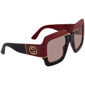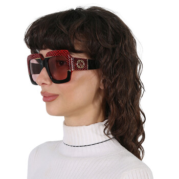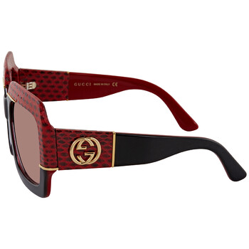 Gucci Sunglasses. Series number: GG0484S. Color code: 004. Size: 54. Shape: Square. Lens Width: 54 mm. Lens Bridge: 25 mm. Arm Length: 140 mm. 100% UV protection. Non-Polarized. Frame Material: Acetate. Frame Color: Black- Snakeskin Print. Lenses Type: Pink. Rim Style: Full-Rim. UPC/EAN code: 889652202051. Gucci Pink Square Sunglasses GG0484S 004 54. Made in Italy.