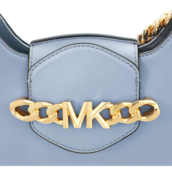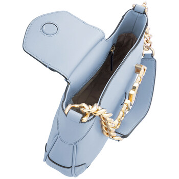 Michael Kors Ladies Shoulder Bag. SKU: 30F1G2HL1L-487. Barcode: 194900928257. Color: Pale Blue. Size: W 9.8" x H 6.3" x D 2.8". Michael Kors Ladies Hally Extra-small Shoulder Bag in Pale Blue. The Hally extra-small shoulder bag is made in calf leather and features a main compartment, a single chain-link shoulder strap, foldover top with magnetic fastening, gold-tone logo plaque on the front and finihsed with gold-tone hardware. Calf Leather 100%