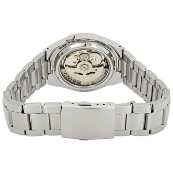 Stainless steel case with a stainless steel bracelet. Fixed stainless steel bezel. Blue dial with luminous silver-tone hands and index hour markers. Arabic numeral minute markers (at 5 minute intervals). Minute markers around the outer rim. Dial Type: Analog. Day of the week and date display at the 3 o'clock position. Seiko caliber 7S26 automatic movement with a 40-hour power reserve. Scratch resistant Hardlex crystal. Pull / push crown. Transparent case back. Round case shape. Case size: 37 mm. Case thickness: 11 mm. Band width: 20 mm. Fold over clasp with a safety release. Water resistant at 30 meters / 100 feet. Functions: date, day, hour, minute, second. Casual watch style. Seiko Series 5 Automatic Blue Dial Men's Watch SNK615.