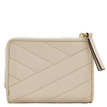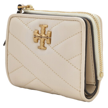 Tory Burch Ladies Wallets. SKU: 153121-122. Color: New Cream. Size: H: 3.5" x L: 4.5". Tory Burch Bi-Fold Chevron Kira Wallet In New Cream. The Kira wallet is crafted from Napa leather with a pin snap closure, featuring one zipper coin pocket, one bill pocket, two slit pockets, and six card pockets, all adorned with a quilting technique. Nappa Leather 100%.