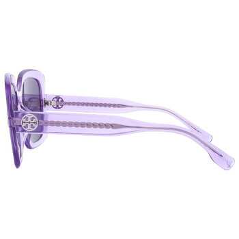 Tory Burch Sunglasses. Series number: TY7193U. Color code: 18851A. Shape: Square. Lens Width: 56 mm. Lens Bridge: 19 mm. Arm Length: 140 mm. 100% UV protection. Frame Material: Acetate. Frame Color: Transparent Violet. Lenses Type: Violet. Rim Style: Full-Rim. UPC/EAN code: 725125440066. Tory Burch Violet Square Ladies Sunglasses TY7193U 18851A 56.