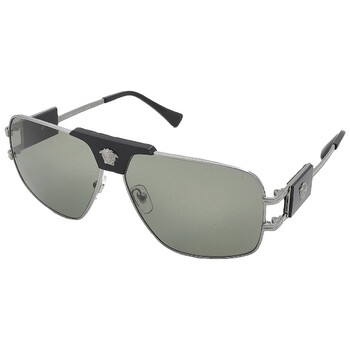 Versace Sunglasses. Series number: VE2251. Color code: 1001/2. Shape: Navigator. Lens Width: 63 mm. Lens Bridge: 12 mm. Arm Length: 145 mm. 100% UV protection. Non-Polarized. Frame Material: Metal. Frame Color: Gunmetal. Lenses Type: Green. Rim Style: Full-Rim. UPC/EAN code: 8056597729826. Versace Green Navigator Men's Sunglasses VE2251 1001/2 63.