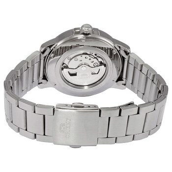 Stainless steel case with a stainless steel bracelet. Fixed stainless steel bezel. Blue dial with luminous silver-tone hands and index hour markers. Minute markers around the outer rim. Dial Type: Analog. Luminescent hands and markers. Date and day of the week display at the 3 o'clock position. Orient calibre F6922 automatic movement, containing 22 Jewels, bitting at 21600 vph, and has a power reserve of approximately 40 hours. Scratch resistant mineral crystal. Pull / push crown. Transparent case back. Round case shape. Case size: 42 mm. Case thickness: 12 mm. Band width: 20 mm. Deployment clasp with a push button release. Water resistant at 50 meters / 165 feet. Functions: date, day, hour, minute, second. Casual watch style. Watch label: Japan Movt. Orient Automatic Blue Dial Men's Watch RA-AA0C02L19B.