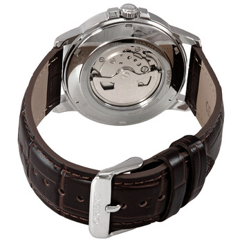 Stainless steel case with a brown leather strap. Fixed stainless steel bezel. Green dial with luminous yellow gold-tone hands and index hour markers. Arabic numerals mark the 6 and 12 o'clock positions. Minute markers around the outer rim. Dial Type: Analog. Luminescent hands and markers. Day of the week and date display at the 3 o'clock position. Automatic movement. Scratch resistant mineral crystal. Pull / push crown. Solid case back. Round case shape. Case size: 42 mm. Case thickness: 12 mm. Band width: 22 mm. Tang clasp. Water resistant at 50 meters / 165 feet. Functions: date, day, hour, minute, second. Casual watch style. Watch label: Japan Movt. Orient Classic Automatic Green Dial Men's Watch RA-AA0C06E19B.
