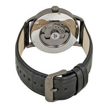 Black ion-plated stainless steel case with a black leather strap. Fixed black ion-plated bezel. Black (open heart) dial with rose gold-tone hands and index hour markers. Minute markers around the outer rim. Dial Type: Analog. Orient calibre F6T22 automatic movement with a 40-hour power reserve. Scratch resistant mineral crystal. Pull / push crown. Transparent case back. Round case shape. Case size: 41 mm. Case thickness: 12 mm. Band width: 21 mm. Tang clasp. Water resistant at 50 meters / 165 feet. Functions: hour, minute, second. Casual watch style. Watch label: Japan Movt. Orient Open Heart Automatic Black Dial Men's Watch FAG02001B0.