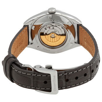 Stainless steel case with a (calfskin) leather strap. Fixed stainless steel bezel. Dusty pink (open heart) dial with silver-tone hands and index hour markers. Diamond set at 12 o’clock position. Minute markers around the outer rim. Dial Type: Analog. Orient calibre 55C22 automatic movement with a 40-hour power reserve. Scratch resistant sapphire crystal. Pull / push crown. Transparent case back. Round case shape. Case size: 30 mm. Case thickness: 10.5 mm. Band width: 14 mm. Fold over clasp. Water resistant at 50 meters / 165 feet. Functions: hour, minute. Orient Star Series. Casual watch style. Watch label: Japan Movt. Orient Orient Star Automatic Pink Dial Ladies Watch RE-ND0103N00B.