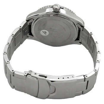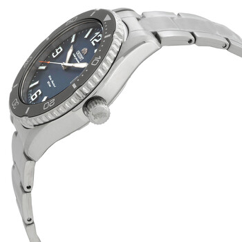 Silver-tone stainless steel case and bracelet. Uni-directional rotating grey stainless steel bezel. Blue dial with silver-tone hands and index-Arabic numeral hour markers. Minute markers around the outer rim. Dial Type: Analog. Luminescent hands and markers. Date display at the 3 o'clock position. Orient Calibre VS422 solar movement. Scratch resistant sapphire crystal. Screw down crown. Solid case back. Round case shape, case size: 39.9 mm, case thickness: 11.2 mm. Band width: 20 mm. Fold over clasp with a safety release. Water resistant at 200 meters / 660 feet. Functions: date, hour, minute, second. Sport Series. Sport watch style. Watch label: Japan Movt. Orient Sport Solar Blue Dial Men's Watch RA-WJ0002L10B.