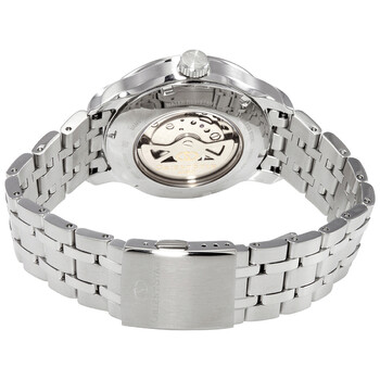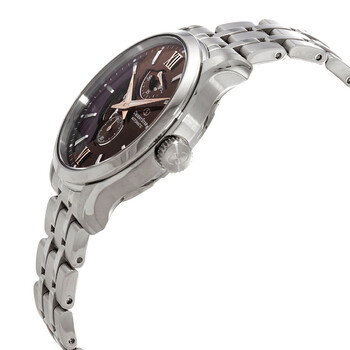 Stainless steel case with a stainless steel bracelet. Fixed stainless steel bezel. Brown blue (cut-out) dial with luminous rose gold-tone hands and index hour markers. Roman numeral markers at the 6 and 12 o'clock positions. Minute markers around the outer rim. Dial Type: Analog. Luminescent hands and markers. Two sub-dials displaying: 60 second and power reserve. Automatic movement with a 50-hour power reserve. Scratch resistant sapphire crystal. Pull / push crown. Transparent case back. Round case shape. Case size: 41 mm. Case thickness: 11.5 mm. Band width: 22 mm. Deployment clasp with a push button release. Water resistant at 100 meters / 330 feet. Functions: hour, minute, second, power reserve indicator. Orient Star Series. Dress watch style. Watch label: Japan Movt. Orient Star Automatic Open Heart Brown Blue Dial Men's Watch RE-AV0B02Y00B.