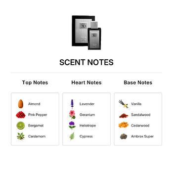 - Vanilla, Sandalwood, Cedarwood, Ambrox super, Guaiac wood, Musk