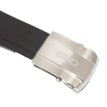 Silver-tone stainless steel case with a black rubber strap. Uni-directional rotating black bezel. Black dial with silver-tone hands and index hour markers. Minute markers around the outer rim. Dial Type: Analog. Luminescent hands and markers. Date display at the 6 o'clock position. Chronograph - three sub-dials displaying: 60 second, 60 minute and 12 hour. Oris Calibre 774, base SW 500 automatic movement with a 48-hour power reserve. Scratch resistant sapphire crystal. Screw down crown. Round case shape. Case size: 46 mm. Water resistant at 500 meters / 1650 feet. Functions: chronograph, date, hour, minute, small second. Additional Info: original box, international warranty card, manual (complete accessories). Dive watch style. Watch label: Swiss Made. Oris Aquis Chronograph Automatic Black Dial Unisex Watch 774 7655 4154 4 26 34EB.