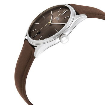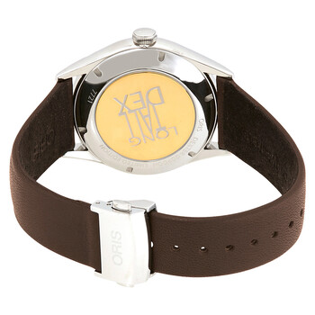 Silver-tone stainless steel case with a dark brown leather strap. Fixed silver-tone stainless steel bezel. Dark brown dial with silver-tone hands and index hour markers. Dial Type: Analog. Date display at the 6 o'clock position. Oris Calibre 733 automatic movement with a 38-hour power reserve. Scratch resistant sapphire crystal. Solid case back. Round case shape. Case size: 40 mm. Band width: 21 mm. Deployment clasp. Water resistant at 50 meters / 165 feet. Functions: date, hour, minute, second. Additional Info: limited edition dexter gordon. Casual watch style. Watch label: Swiss Made. Oris Artelier Automatic Limited Edition Dexter Gordon Dark Brown Dial Men's Watch 733 7721 4083-SET LS.