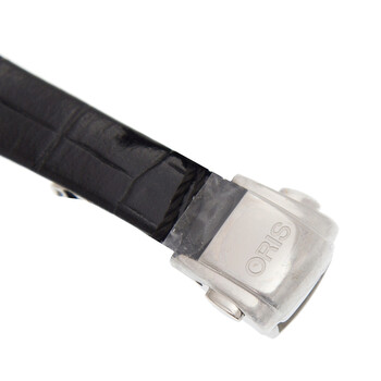 Silver-tone stainless steel case with a black leather strap. Fixed silver-tone stainless steel bezel. Grey dial with silver-tone hands and diamond index hour markers. Dial Type: Analog. Date display at the 3 o'clock position. Oris Calibre 561, base ETA 2671 automatic movement with a 38-hour power reserve. Scratch resistant sapphire crystal. Transparent case back. Round case shape. Case size: 28 mm. Deployment clasp. Water resistant at 50 meters / 165 feet. Functions: date, hour, minute, second. Additional Info: original box, international warranty card, manual (complete accessories). Luxury watch style. Watch label: Swiss Made. Item Variations: 01 561 7722 4053-07 5 14 64FC. Oris Artelier Date Automatic Grey Dial Unisex Watch 561 7722 4053 5 14 64FC.