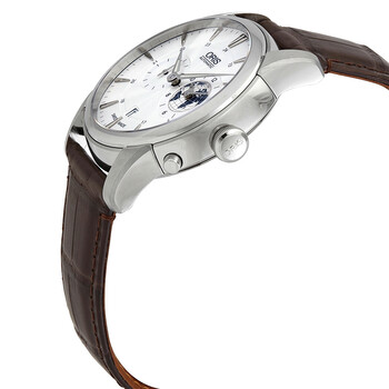 Stainless steel case with a brown leather strap. Fixed stainless steel bezel. Silver dial with luminous silver-tone hands and index hour markers. 24 hour markers. Minute markers around the outer rim. Dial Type: Analog. Luminescent hands. Date display above the 6 o'clock position. Two sub-dials displaying: small seconds and 12 hours. Oris calibre 690, base ETA 2836-2 automatic movement, based upon ETA 2836-2, containing 30 Jewels, bitting at 28800 vph, and has a power reserve of approximately 38 hours. Scratch resistant sapphire crystal. Pull / push crown. Solid case back. Round case shape. Case size: 42 mm. Case thickness: 13 mm. Band width: 20 mm. Deployment clasp. Water resistant at 50 meters / 165 feet. Functions: date, second time zone, hour, minute, small second. Artelier Series. Travel watch style. Watch label: Swiss Made. Oris Artelier Greenwich Mean Time Automatic Men's Watch 690-7690-4081LS2.